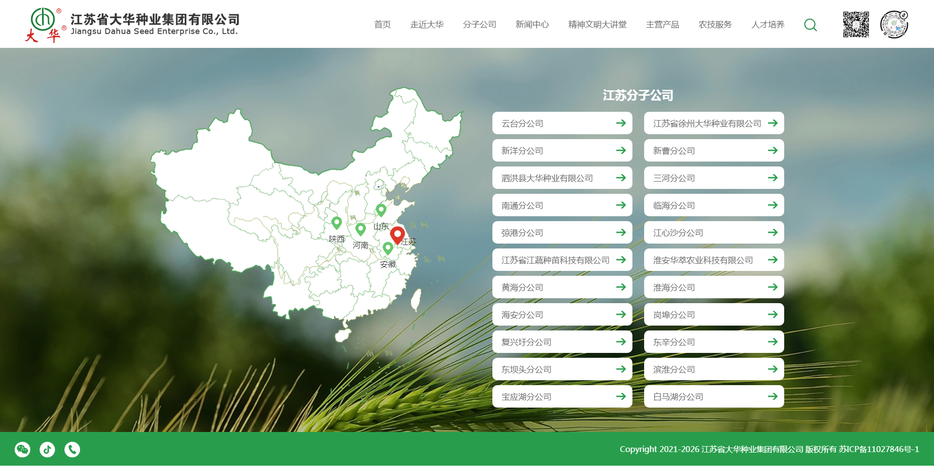 江蘇省大華種業(yè)集團(tuán)有限公司成立于1993年,隸屬于江蘇農(nóng)墾,是集農(nóng)作物種 子研發(fā)、生產(chǎn)、加工、包裝、銷售、服務(wù)于一體的國(guó)有大型現(xiàn)代種業(yè)集團(tuán),是國(guó)內(nèi) 生產(chǎn)經(jīng)營(yíng)量名列前茅的種業(yè)企業(yè),其綜合實(shí)力位居全國(guó)第三、江蘇第一。